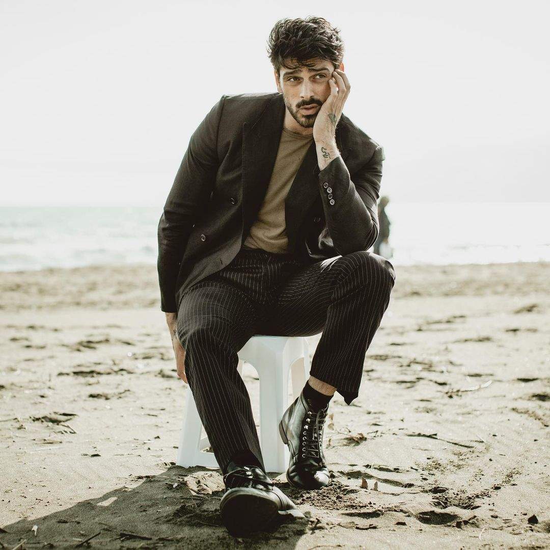 Michele wore pinstriped trousers along with his double-breasted blazer and a T-shirt to spherical off the look. These boots added to his look.