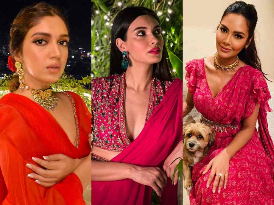 Diana Penty celebrated the competition of lights in Afra/ deep fuchsia ruffled sari with a jewel-embellished shirt and embroidered belt from the identical designer. 04/5​Esha Gupta’s sari Esha Gupta surprised