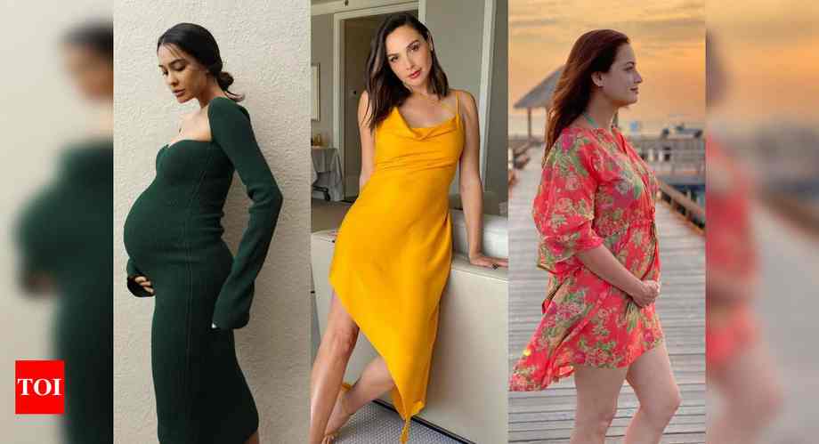 Gal Gadot exudes oomph within the satin slip gown and flaunts her child bump. Singer Halsy proves that she is one trendy mommy-to-be in a tie-dye cardigan and an animal